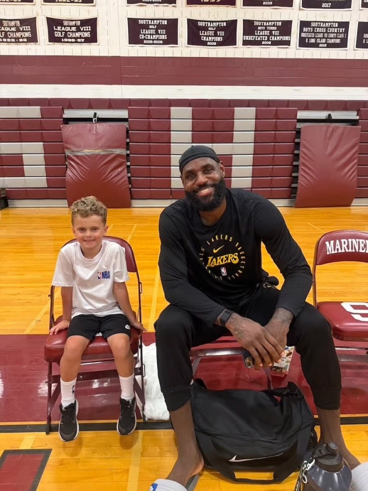 7月4日讯 今日,纽约长岛媒体报道了湖人前锋詹姆斯上周在当地一所高中的球员进行训练的动态。