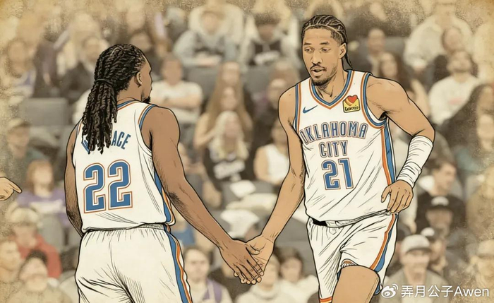本场比赛,雷霆整体进攻行云流水,多点开花,多达5人得分上双,全队命中率超过55.6%,外线更是47投23中,命中率高达48.9%......而这一切,都要从杰伦威的缺阵说起。